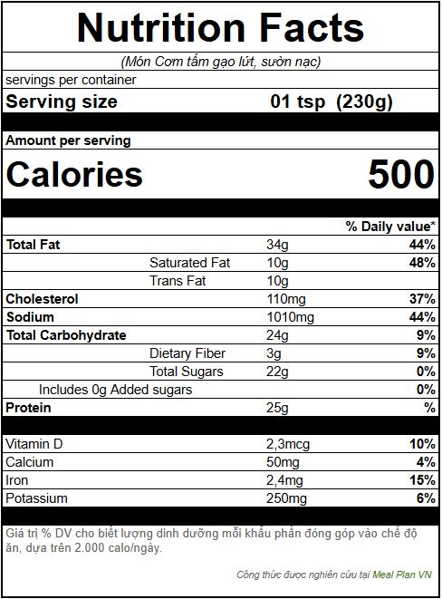 Bảng Nutrition Fact