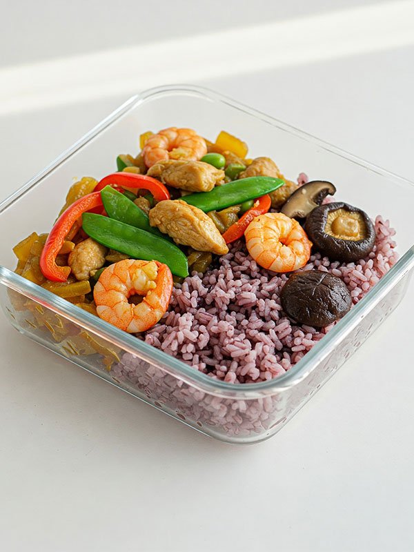 Với ức gà và tôm được chế biến không dầu, kết hợp với 4 loại rau củ, giúp bạn tăng khối lượng cơ bắp lên tối đa và cực kỳ dễ nấu