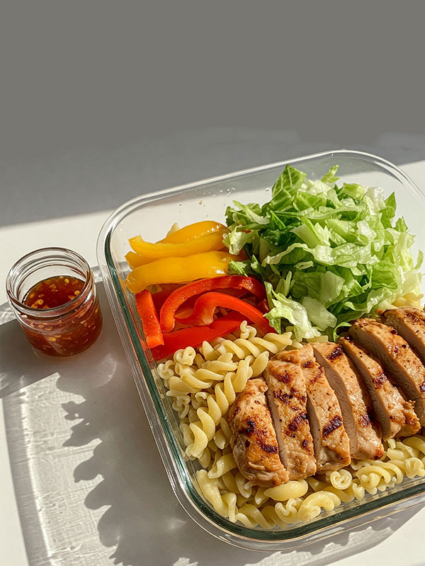 Đổi vị với Nui gạo lứt ức gà sốt Thái cay nhẹ, chua ngọt, kết hợp rau củ giòn tươi. Món ăn eat clean ngon miệng, giàu dinh dưỡng, không lo ngán!